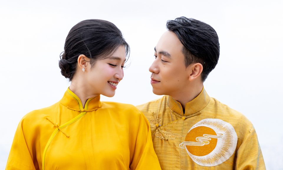 Trong ngày trọng đại, Á hậu Phương Nhi và chồng thiếu gia đồng điệu lựa chọn áo dài truyền thống. Nếu Phương Nhi ghi điểm với vẻ đẹp nền nã trong thiết kế áo dài thêu họa tiết hoa sen, biểu trưng cho sự tinh khiết và an yên, thì chú rể Phạm Nhật Minh Hoàng lại chọn áo dài thêu hình sơn thủy, gợi nét vững chãi, trầm tĩnh. Cả hai cùng xuất hiện với phong thái nhẹ nhàng, tiết chế, đúng tinh thần của lễ hằng thuận.