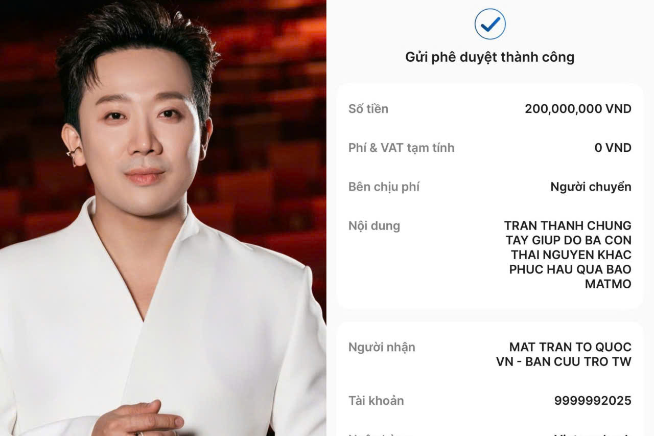 Ngay sau khi lời kêu gọi ủng hộ đồng bào Thái Nguyên được phát động, nhiều nghệ sĩ Việt Nam đã nhanh chóng chung tay quyên góp, thể hiện tinh thần đoàn kết và nhân ái hướng về vùng bão. Dẫn đầu phong trào, MC – diễn viên Trấn Thành đã gửi 200 triệu đồng vào tài khoản cứu trợ sáng ngày 8/10. Anh chia sẻ: “Thấy cảnh bà con oằn mình trong lũ, tôi thật sự không thể ngồi yên. Hy vọng chút tấm lòng nhỏ có thể phần nào giúp họ vượt qua thời điểm khó khăn này”.