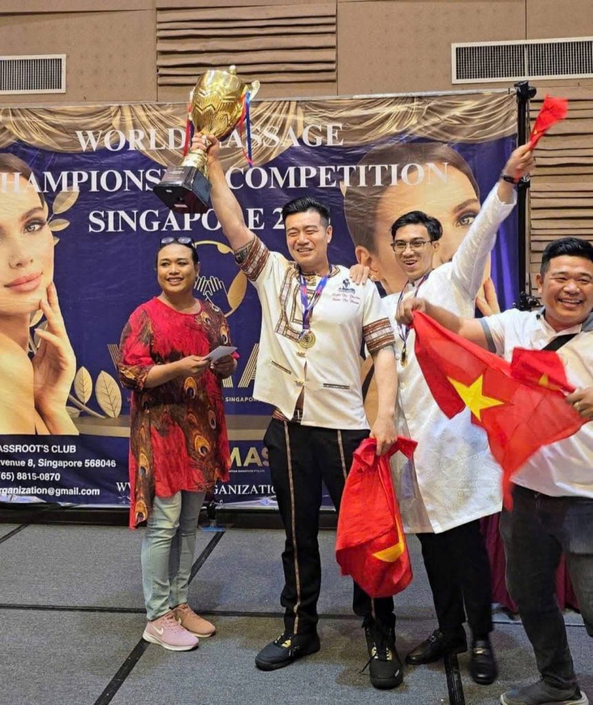 [Going beyond the limits of a rehabilitation specialist, therapy expert Jimmy Lee (Ly Tuan Thanh) made history by becoming the first Vietnamese to win the World Massage Championship in Singapore, affirming the position of Vietnam’s therapy industry on the global map.]