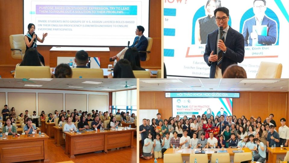 Không chỉ tập trung đào tạo, Giám đốc Đinh Quang Đức còn ghi dấu qua hoạt động học thuật với Tea Talk: CLT in Practice ngày 6/4/2026. Chương trình do SAM English House tổ chức cùng Trường Kinh tế và Quản lý công – Đại học Kinh tế Quốc dân, với anh là host và diễn giả Rara Liu – chuyên gia giáo dục đến từ Trung Quốc. Nội dung xoay quanh phương pháp CLT, triển khai thực tiễn với 80% là các case studies, giúp người tham dự hiểu rõ cách ứng dụng trong lớp học.