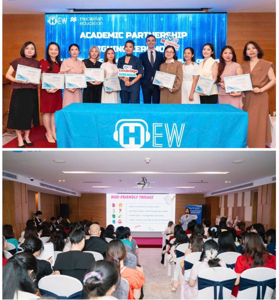 TCDN24H – HEW London và Macmillan Education vừa tổ chức lễ ký kết hợp tác với 8 trung tâm ngoại ngữ trên toàn quốc nhằm triển khai mô hình dạy tiếng Anh tích hợp DISC và CLIL theo chuẩn Cambridge. Sự kiện đánh dấu bước tiến quan trọng trong việc đưa các xu hướng giáo dục quốc tế vào Việt Nam, tăng cường chất lượng giảng dạy và tối ưu trải nghiệm học tập cho học sinh.