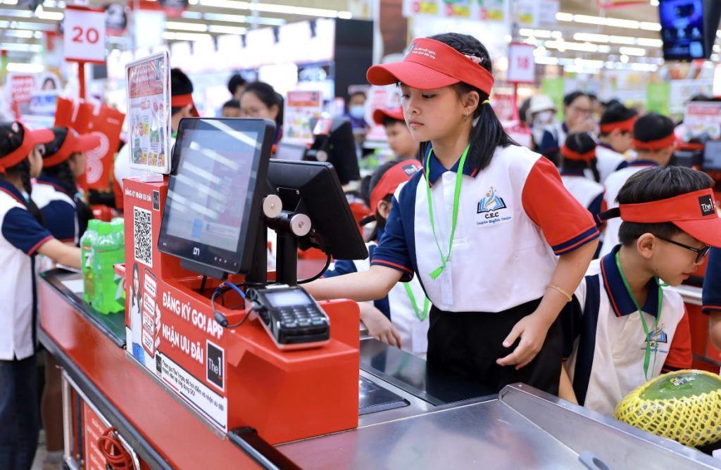 Khoảnh khắc các em trải nghiệm làm thu ngân nhí tại siêu thị