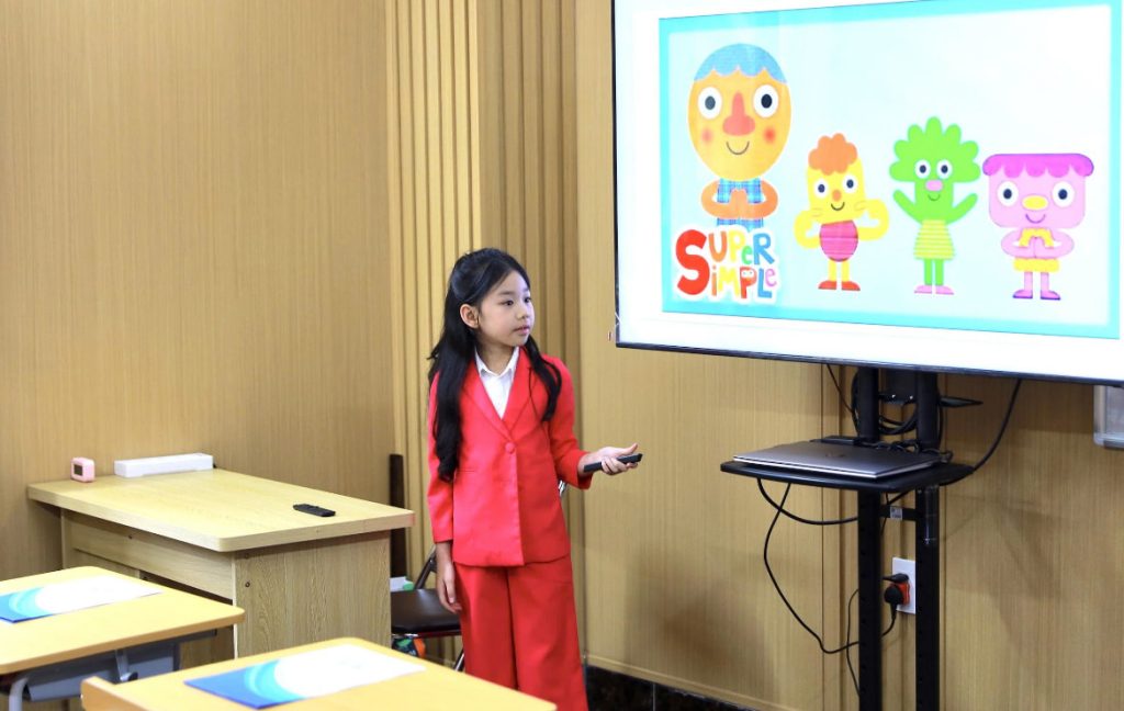 Học sinh tham gia ‘trợ giảng nhí’, trực tiếp đứng lớp dưới sự quan sát của giáo viên và phụ huynh, qua đó rèn phản xạ ngôn ngữ và sự chủ động