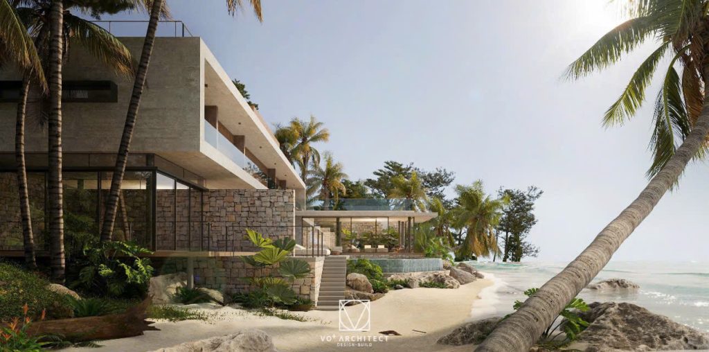 Một dự án nghỉ dưỡng do Vo+architect thiết kế, kiến trúc hòa quyện cùng thiên nhiên, tôn vinh ánh sáng, vật liệu và trải nghiệm sống gần gũi với cảnh quan biển